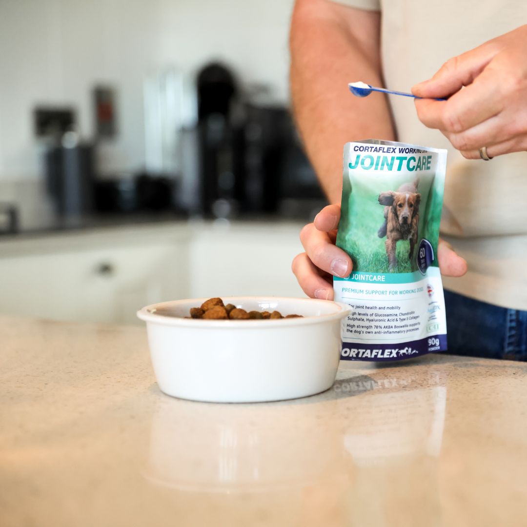 Canine Cortaflex® Working Dog Jointcare Ultra Powder provides the highest strength, natural ingredients to support joint health and mobility in hard-working or very active dogs, and those of advancing years. Scientifically researched and containing elevated levels of key compounds such as glucosamine, chondroitin and hyaluronic acid, as well as collagen. Antioxidants and a highly concentrated Boswellia extract support the dog’s own natural anti-inflammatory processes, to ensure dogs can maintain their active lifestyle in comfort!